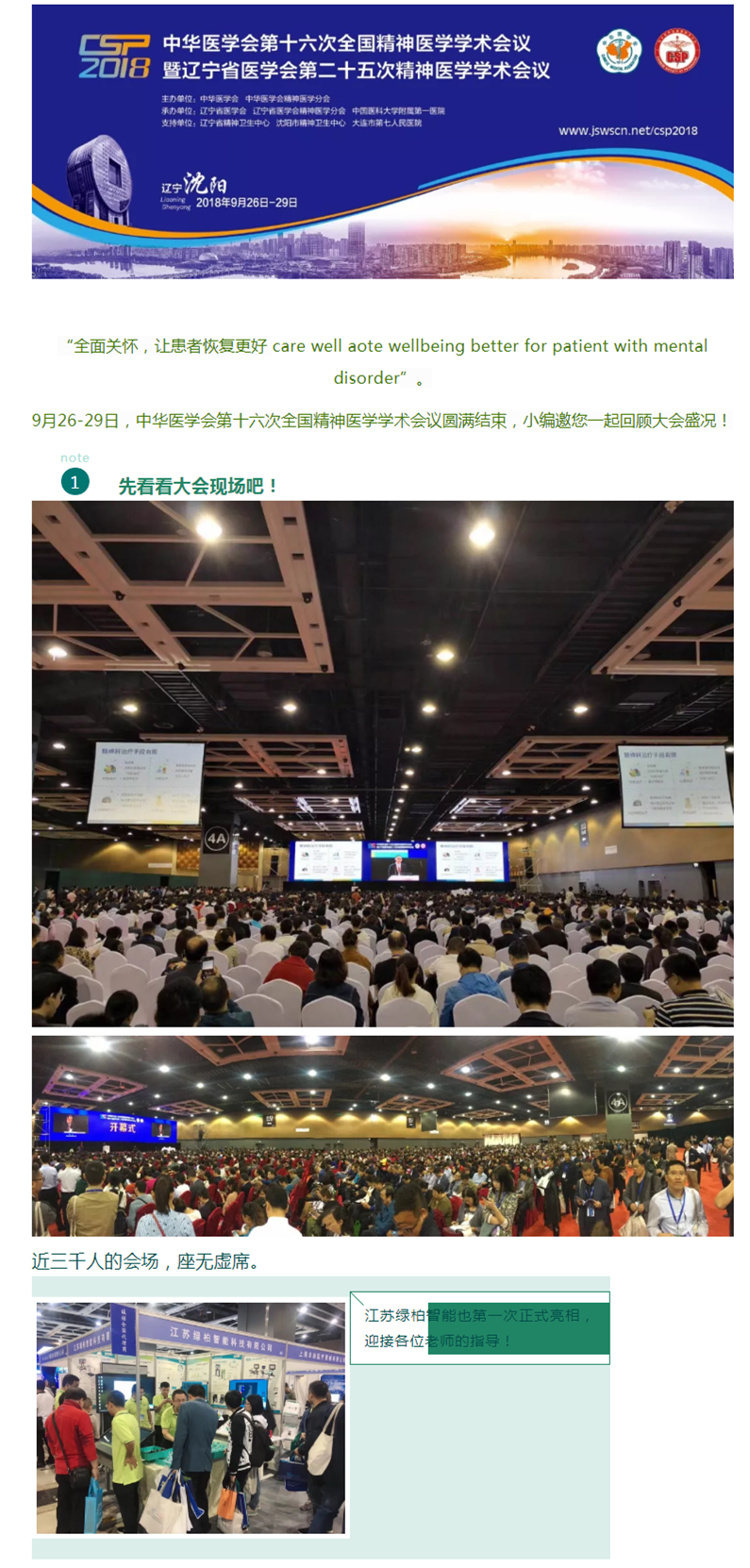 南京拓冠醫(yī)療有限公司攜手江蘇綠柏智能科技有限公司,首次在精神領(lǐng)域大會(huì)亮相,讓我們一睹風(fēng)采吧!