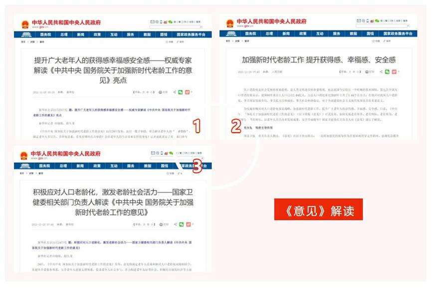 《意見》自發(fā)布后,中華人民共和國中央人民政府官網(wǎng)“政策解讀”版塊又接連發(fā)布多篇專題文章對《意見》進行全方位、多角度的解讀宣傳。下面和小編一起來認識了解《意見》吧!